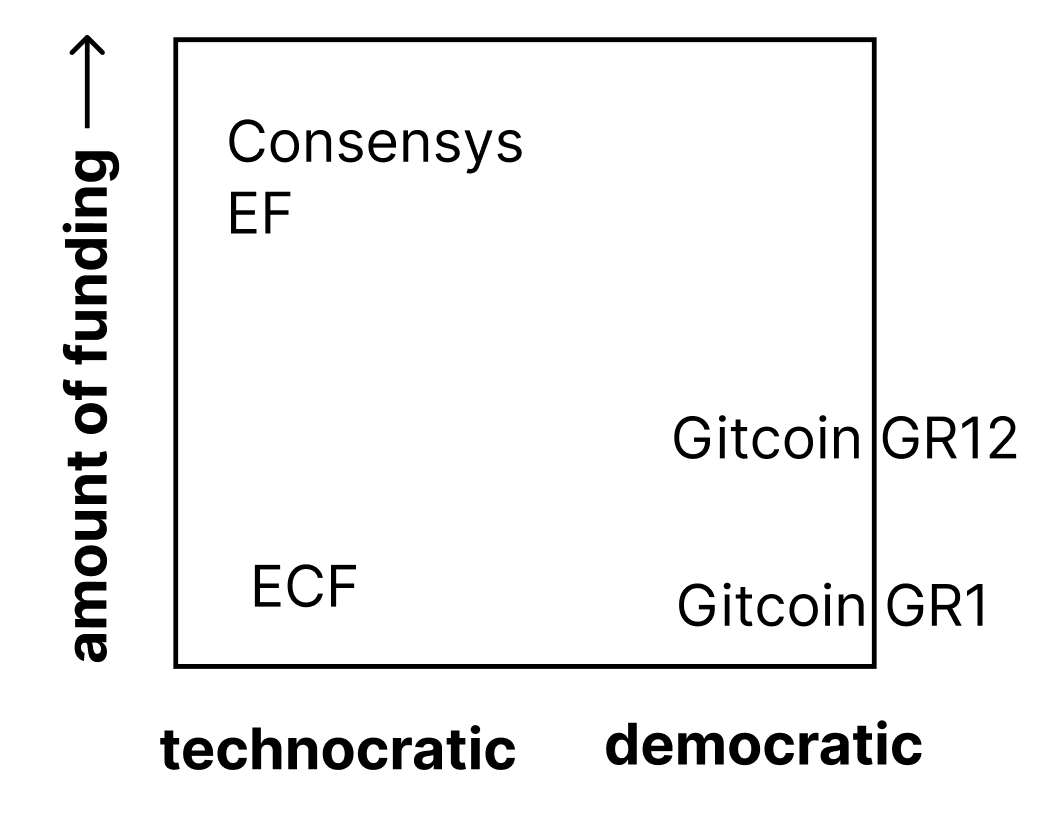 Technocratic = small group of decision makersAt the ECF/EF, you had to go through a grantmaking process where a small committee would decide if you got funding. At Consensys, you had to be hired by Joe Lubin or his disciples.